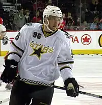 After being a healthy scratch in his first two games with the Stars,[7] Brunnström became the third player in NHL history to score a hat trick in his debut game on 15 October 2008, joining Alex Smart of the Montreal Canadiens (14 January 1943) and Réal Cloutier of the Quebec Nordiques (10 October 1979), and later joined by Derek Stepan of the New York Rangers (9 October 2010), Auston Matthews (who scored four) of the Toronto Maple Leafs (12 October 2016) and Ryan Poehling of the Montreal Canadiens (6 April 2019). Brunnström was credited with the game-winning goal, helping the Stars to a 6-4 win over the Nashville Predators.[8] He also scored a fourth goal in his debut game which was disallowed.[9]