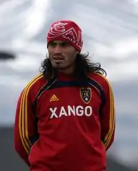 He was acquired by Real Salt Lake at the same time as fellow Argentines Matias Mantilla and Javier Morales. He scored his first goal against Kansas City Wizards, and celebrated this goal by doing his customary backflip. Six minutes into a game against Los Angeles Galaxy on 6 September 2008, Espíndola scored a goal that was later ruled offside. However, before he had seen the final decision on the goal he had commenced his celebratory backflip, which resulted in him injuring his ankle, ruling him out for around eight weeks.[1] Real Salt Lake decided not to purchase Espíndola's contract and he was released in January 2009. He then signed to play for Venezuelan team Deportivo Anzoátegui, scoring 3 goals in 5 matches for the club. On 29 January 2009 Espíndola scored Deportivo Anzoátegui's first ever goal in the Copa Libertadores helping the club to a 2–0 victory over Deportivo Cuenca.