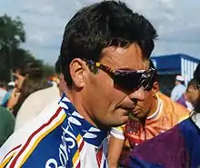 Fabrice Philipot (24 September 1965 – 17 June 2020) was a French road bicycle racer. His greatest achievements include winning the young rider classification in the 1989 Tour de France where he placed 24th overall, and finishing second at the 1989 Liège–Bastogne–Liège. In the 1990 Tour de France he was the highest placed rider on his Castorama team finishing in 14th overall, which also made him the highest placing Frenchman that year. He rode in support of Miguel Induráin during the 1991 Tour de France on a very strong Team Banesto who had five riders placed in the top 25 including their leader in the maillot jaune. Philipot placed 24th overall. He rode in support of Indurain during his 2nd Tour victory in 1992 but did not finish. He helped Indurain to victory at the 1992 and 1993 Giro d'Italia. He then rode for Team Chazal in his homeland before retirement. He died on 17 June 2020 at the age of 54.[1][2]