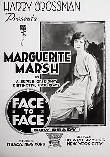 Face to Face is a 1922 American silent mystery film directed by Harry Grossman and starring Marguerite Marsh, Edna Holman and Coit Albertson.[1][2] It was distributed by the independent company Playgoers Pictures.