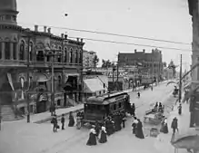 The intersection of Fair Oaks Avenue and Colorado Boulevard became known as "The Corners."[2] The avenue, along with Colorado Boulevard became the main streets in the early development of Pasadena with Fair Oaks Avenue being the main route between Los Angeles and Pasadena.[2]