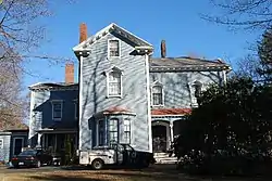 The house stands in a residential area east of downtown Taunton, on the east side of Elm Street opposite its junction with Vine Street. It is a 2+1⁄2-story wood-frame structure, with a cross-gabled roof and clapboarded exterior. It is a roughly T-shaped plan, with a central front-gable section, a section projecting right from its midsection, and another projection to the left near the rear. Its roof has extended eaves with large modillion blocks, and windows are set in segmented-arch openings. The front entrance is sheltered by a porch whose sections have a similar segmented-arch valances, supported by chamfered square posts. Windows on the second floor have elaborate surrounds with a bracketed sill and gabled hood. The frontmost section of the main block has a first-floor polygonal bay, topped by a turret-like roof with modillioned eave.[2]