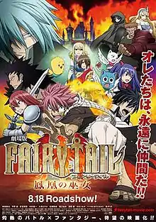 Fairy Tail the Movie: Phoenix Priestess (Japanese: 劇場版 FAIRY TAIL 鳳凰の巫女, Hepburn: Gekijō-ban Fearī Teiru: Hōō no Miko, lit. "Theatrical Feature Fairy Tail the Movie: Phoenix Priestess") is a 2012 Japanese animated fantasy action film and the first based on the manga series Fairy Tail by Hiro Mashima.[2] It was directed by Masaya Fujimori, and its screenplay was written by anime staff writer Masashi Sogo, while Mashima was involved as the film's story planner.[3] Tetsuya Kakihara, Aya Hirano, Rie Kugimiya, Yuichi Nakamura, Sayaka Ōhara, Satomi Satō, and Yui Horie reprise their character roles from the anime series. The film also features Aya Endō as the titular priestess Éclair, and Mika Kanai as her birdlike companion Momon. The first film was released in Japan on August 18, 2012, and on Blu-ray and DVD in North America on December 10, 2013.
