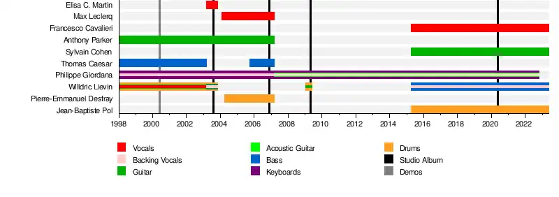 - Philippe Giordana - keyboards, backing vocals (1998-2022, died in 2022), acoustic guitars (2007-2022)
