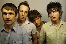 The album peaked at No. 44 on the ARIA Albums Chart.[9] Three singles were released from the album: "The Familiar" (May 2005), "Hurricane" (October), and "Love for Sale" (March 2006). "The Familiar" reached No. 62 on the ARIA Singles Chart, while "Hurricane" peaked at No. 65. "Hurricane" was listed at No. 21 on the Triple J Hottest 100, 2005.[10] The video for Hurricane was recorded in the Domed Reading Room of the State Library of Victoria. Addicted Romantic was nominated for the inaugural J Award, although it was won by Wolfmother.[6] In 2006, Phil Downing left the band, citing communication problems with other members. After that point, the band's line-up of Hudson, Berryman, Gregory and Munnings, remained unchanged, until Berryman left in March 2008. He was replaced by Lucio Pedrazzi.[11]