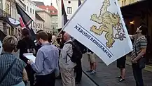 On July 4, 2015, Falanga officially established cooperation with the Czech National Democracy, whose representatives took part in a joint conference on the issues of Central Europe and then in an anti-American protest at the US consulate in Kraków.[18]