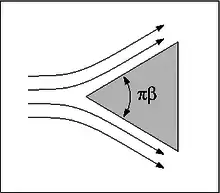 In fluid dynamics, the Falkner–Skan boundary layer (named after V. M. Falkner and Sylvia W. Skan[1]) describes the steady two-dimensional laminar boundary layer that forms on a wedge, i.e. flows in which the plate is not parallel to the flow. It is also representative of flow on a flat plate with an imposed pressure gradient along the plate length, a situation often encountered in wind tunnel flow. It is a generalization of the flat plate Blasius boundary layer in which the pressure gradient along the plate is zero.