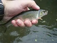 The fallfish (Semotilus corporalis) is a North American freshwater fish, a chub in the family Cyprinidae. The fallfish is the largest minnow species native to Eastern North America.
