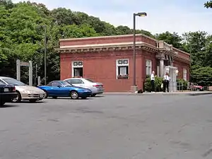 In 1912 the original station was sold to the Swift family who moved it across the tracks. In its place the New Haven Railroad built a replacement brick station, which stands to this day.[1] It served daily year-round New Haven RR trains to Boston until 1959. Summertime service continued to 1964. The station was also a stop for day and nighttime versions of the NH's Cape Codder service to New York City; these trains were among the trains terminated in 1964.[2][3]