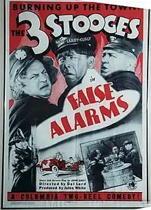 False Alarms is a 1936 short subject directed by Del Lord starring American slapstick comedy team The Three Stooges (Moe Howard, Larry Fine and Curly Howard). It is the 17th entry in the series released by Columbia Pictures starring the comedians, who released 190 shorts for the studio between 1934 and 1959.