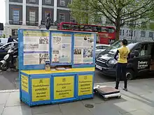 Since 1999, the Chinese Communist Party has persecuted Falun Gong in mainland China. In response, Falun Gong practitioners around the world have conducted activities aimed at raising awareness about related human rights issues. These include lobbying, passing out of flyers, participating in sit-ins in front of Chinese embassies and consulates, and staging parades and demonstrations.[4] They have established media outlets, have founded advocacy and research organizations to report information on the persecution in China, and launched lawsuits against the alleged architects and participants of the persecution campaign.[1]