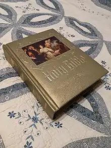 A family Bible is a Bible handed down through a Christian family, with each successive generation recording information about the family's history inside of it. Typically, this information consists of births, deaths, baptisms, confirmations and marriages; family Bibles contain a "family record" or "family registry" section to record this information. People sometimes may place other items, such as holy cards, certificates, letters, newspaper cuttings and photographs, inside a family Bible. In the United Kingdom, they are found today and were especially common in the Victorian period, and are also found in the United States, Australia and New Zealand. Family Bibles are often placed on a family's home altar, being regularly used for family prayer. They are often used as sources for genealogical research.