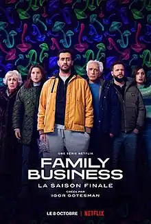 Family Business is a French streaming television series created and directed by Igor Gotesman. The plot revolves around a failed entrepreneur, Joseph (Jonathan Cohen), who finds out that cannabis is about to be legalized in France. He consequently decides to change the family kosher butcher shop into the first marijuana coffeeshop in France.[1][2]