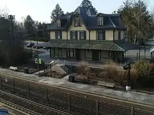 Fanwood is a New Jersey Transit railroad station on the Raritan Valley Line, in Fanwood, Union County, New Jersey, United States. The building on the north side of the tracks (westbound platform) is a Victorian building and, like the north building at Westfield, is used by a non-profit organization. The address is Fanwood Station, 238 North Avenue, Fanwood, Union County, New Jersey.[6] The ticket office is in the station building on the south side of the tracks (eastbound platform). The station was added to the National Register of Historic Places on July 17, 1980.[5]