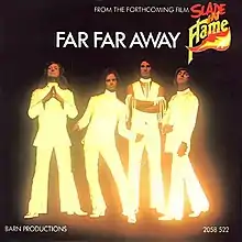 "Far Far Away" is a song by the British rock band Slade, released in 1974 as the lead single from the band's first soundtrack album and fifth studio album Slade in Flame, in promotion of the upcoming film of the same name.[2] The song was written by lead vocalist Noddy Holder and bassist Jim Lea, and produced by Chas Chandler. It reached No. 2 in the UK, remaining in the charts for six weeks.[3] The song was certified UK Silver by BPI in November 1974.[4]