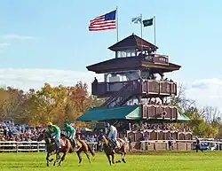 The Far Hills Races is a steeplechase horserace held annually in Far Hills, New Jersey, United States. The October 2021 event was the 100th running,[1] and race day purses can equal up to or more than $1,000,000, with six races offering the highest purses on the National Steeplechase Association circuit.