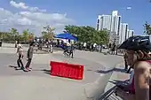 Far Rockaway Skate Park is a public skate park on the Rockaway Beach and Boardwalk in Far Rockaway, Queens, New York City, opened in 2011.[1][2][3][4] The park is open dawn till dusk and is unsupervised.[5] In addition to skateboarding, scooters and inline skates are permitted.[5] The park was built over a large parking lot that was reduced in size but not eliminated.[6] The skatepark project was part of a larger renovation of O'Donohue Park that began in 2010 and was completed in 2011.[6] The park was designed by SITE Design Group and built by California Skateparks.[2]