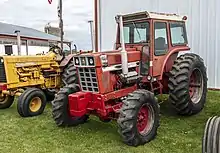 The Farmall 1468 was produced beginning in 1971. It was essentially a Farmall 1466 with an International 549-cubic-inch (9,000 cc) diesel V-8 truck engine. Compared to the 1466, it was no more powerful, but made a distinctive noise and had two prominent exhaust stacks flanking the engine housing. Since the engine was designed for trucks, it could not be used as a structural element, which was standard practice for tractor engines and transmissions, and had to be mounted in a frame. The protruding exhausts and manifolds of the V-8 posed a burn hazard and had to be protected with decorative shields. To save fuel, the injector sent fuel to only four cylinders when the engine was under a light load.[1][3] About 2,500 1468s were produced, selling for about $18,000.[4]