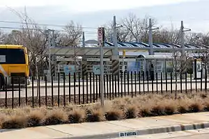 Farmers Branch station (formerly Farmers Branch Park & Ride) is a DART Light Rail station in Farmers Branch, Texas. It serves the Green Line.[2] The station initially opened as a bus-only park & ride facility in the 1990s. Light rail platforms opened as part of the Green Line's expansion in December 2010.