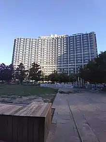 The Dallas Statler Hilton taken from the Main Street Garden Park.