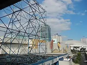 ![]() A view of the Farmers Plaza at the foreground, with the Araneta Coliseum, the Gateway Tower and the Manhattan Gardens complex at the background, from the Araneta Center–Cubao MRT Station (2014) | |