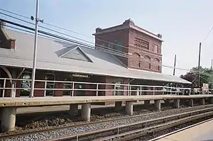 ![]() View of the historic Farmingdale station in Farmingdale, New York, prior to its 2010s restoration, as seen from the north platform. | |||||||||||||