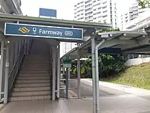 Farmway LRT station (SW2) is an elevated Light Rail Transit (LRT) station on the Sengkang LRT line West Loop in Anchorvale, Sengkang, Singapore, located near Sengkang Riverside Park at Anchorvale Street near the junctions of Anchorvale Crescent and Anchorvale Road. It opened for passenger service on 15 November 2007 to facilitate the completion of Sengkang Sports Centre and Anchorvale Community Club within the vicinity.[1]