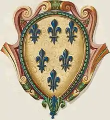 ![]() Blazon: Or, six fleurs-de-lis azure set 3, 2 and 1 | |