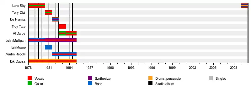 | Past members | Dik Daviss John Mulligan Luke Sky Tony Dial Ian Moore De Harriss Martin Recchi Al Darby Troy Tate |
