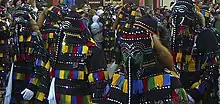 Popular etymology often links Fastnacht (in Mainz also Fassenacht, in Switzerland Fasnacht, in Swabia Fasnet, Fasent) with fasten ("to fast") – allegedly from celebrations on the eve preceding fasting.[1] In the beginning of the 20th century it was a common assumption that the tradition had its roots in pre-Christian ritual. Comparison of dialect variants, however, yields an Old High German *fasanaht, with an element fasa- of unclear meaning. A likely derivation looked to Proto-Indo-European pwo- "purify" (cognate to pava-mana), or alternatively to Middle High German vaselen "prosper, bud", and interpreted the festival as a fertility rite. Historians around Werner Mezger refuted those theories, and showed that the name derives from fasten ("to fast") and the tradition is Christian. They also showed that a lot of the rites came from the civitas diaboli model of the Catholic church.[2]