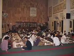 In Islam, fasting (known as sawm,[1] Arabic: صوم; Arabic pronunciation: [sˤawm] or siyam, Arabic: صيام; Arabic pronunciation: [sˤijaːm], also commonly known as rūzeh or rōzah (Persian: روزه) in non-Arab Muslim countries) is the practice of abstaining, usually from food, drink, smoking, sexual activity and anything which substitutes food and drink. During the holy month of Ramadan, sawm is observed between dawn and nightfall when the adhan of the Maghrib prayer is sounded.[2] Ramadan is the ninth month of the Muslim lunar calendar and fasting is a requirement for Muslims as it is the fourth of the five pillars of Islam.[3]