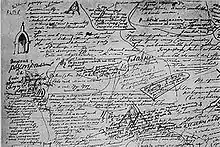 Although Dostoevsky began his first notes for The Brothers Karamazov in April 1878, the novel incorporated elements and themes from an earlier unfinished project he had begun in 1869 entitled The Life of a Great Sinner.[2] Another unfinished project, Drama in Tobolsk (Драма. В Тобольске), is considered to be the first draft of the first chapter of The Brothers Karamazov. Dated 13 September 1874, it tells of a fictional murder in Staraya Russa committed by a praporshchik named Dmitry Ilynskov (based on a real soldier from Omsk), who is thought to have murdered his father. It goes on to note that the father's body was suddenly discovered in a pit under a house.[3] The similarly unfinished Sorokoviny (Сороковины), dated 1 August 1875, is reflected in book IX, chapter 3–5 and book XI, chapter nine.[4]