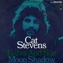 "Father and Son" received substantial airplay on progressive rock and album-oriented rock radio formats, and played a key role in establishing Stevens as a new voice worthy of attention. In 1970 it was only put on the B-side of Stevens' single "Moon Shadow" (Island Records).