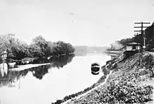 General Washington and the Continental Army returned to the area in December 1777, and began the six month Valley Forge encampment. Most of the troops were quartered south of the river, but Vaux's farm was the site of troop encampments and support facilities.[5] General John Sullivan supervised construction of a floating-log bridge slightly downstream from Fatland Ford.[5] This bridge provided a river crossing in times of high water, and an escape route should British attack from the south.[5] The floating bridge was destroyed by ice in 1779.[5]