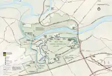 Vaux renamed the property "Vaux Hill." The 300-acre (121.4 hectares) farm spanned the middle of the peninsula.[4] Part of its western boundary, shared with Henry Pawling's farm, was the road south to Fatland Ford, a shallow crossing of the Schuylkill River, opposite Valley Forge.[5]