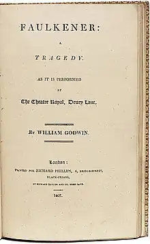 Faulkener (also sometimes spelt as Faulkner) is an 1807 historical tragedy by the British writer William Godwin.[1] The play premiered at the Theatre Royal, Drury Lane on 16 December 1807.[2] The cast included Robert Elliston as Faulkener, Henry Siddons as Stanley, Harriet Siddons as Lauretta, Jack Palmer as Benedetto, William Powell as Orsini and Jane Powell as Arabella.[3]