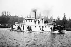 On July 23, 1907, it was reported that Capt. Ott Willard would return as master of Favorite, which he had formerly commanded.[9] On November 12, 1907, Captain Willard gave notice that he would resign as master of Favorite to take charge of a new gasoline-powered boat that he was having built at the yard of Max Timmerman in Coos Bay.[8] (This was probably Wolverine.) Once built, Willard intended to place it on the run from Bandon to Coquille under his own command.[8]