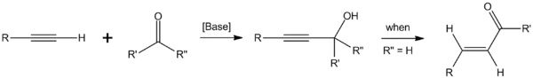 - RR'C=O + HC≡CK ⇌ RR'C(OK)C≡CH