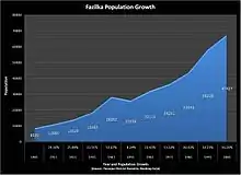 As of the 2011 Indian census,[10] Fazilka had a population of 76,492. Males constitute about 52% of the population and females 48%. Fazilka has an average literacy rate of 70.7%: male literacy is 74.6%, and female literacy is 66.4%. 11% of the population is under 6 years of age.