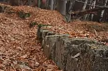 Feţele Albe is a Dacian fortified settlement on the southern side of Muncelului Hill, situated north of Sarmizegetusa Regia, separated from it by a sharp declivity. Along with numerous walls and resulting terraces, the site contained a sanctuary with circular stone pillars on the third terrace.[3] The settlement was destroyed during the First Dacian War, rebuilt and again destroyed by fire by Trajan's army during the Second Dacian War in 106 CE.[1][3] The Romans then built a military camp (castrum) on the site.[3]