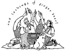 - Fearsome Tales 1996, p. 49, "The Chipper Chums Go Scrumping" (chpt. 4): "It was a banquet fit for a prince. Sardine sandwiches, clotted cream scones, ripe red tomatoes and a tin of spam. There was even a bone for Stinker. They all agreed that they had never seen a scrumptious spread before. Sam found knives and forks and plates, while Algie opened two bottles of ginger beer and set them down on the grass. It was simply gorgeous."