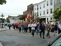 As the statues of the Saints are carried down the streets of East Cambridge and Somerville, they are greeted with fireworks, confetti, and balloons. Before the Saints are carried away from each house, they are lifted three times by the carriers to bless the home.