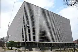 The Federal Building of Little Rock, Arkansas is located at 700 West Capitol Avenue, adjacent to the Richard Sheppard Arnold United States Post Office and Courthouse. It is a large seven-story Modern structure, occupying an entire city block, built in 1962 to the designs of the local firms of Swaim & Allen & Associates and Ginocchio, Cromwell & Associates. Utilizing modern curtain-wall construction, its exterior (on all four sides) is dominated on the upper floors by a narrow windows separated by limestone spandrels. The south-facing main entrance is recessed, consisting of several pairs of double doors, with flanking gold-colored grillwork.[2] The building was built by Robert E. McKee General Contractor, Inc. of Dallas, Texas.[3]