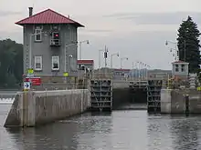 In order to allow ships to move freely, the eastern end of the dam contains a lock, commonly called the Federal Lock or (on some charts and publications) the "Troy-US Lock." The lock, which was opened in 1916, has a single chamber and is 520 feet (160 m) long, 45 feet (14 m) wide, 17 feet (5.2 m) deep, and has a lift of approximately 14 feet (4.3 m). Although it is the first lock encountered by vessels passing from the Hudson River into the Great Lakes by way of the New York State Canal System, and it is sometimes referred to as lock "E-1," it is not part of the Erie Canal (which officially has no "Lock 1"), nor maintained by the New York State Canal Corporation. Both the lock and the dam were built and are currently operated by the U.S. Army Corps of Engineers; as of September 2006, it was listed as being in "Operational" condition.