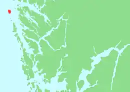 Fedje is the largest island in Fedje Municipality in Vestland county, Norway. The 7.2-square-kilometre (2.8 sq mi) island is home to almost all of the municipality's residents. The island sits west of the Fedjefjorden, south of the mouth of the Fensfjorden, and north of the islands of Øygarden. The North Sea lies to the west of the island. The main population center on the island is the village of Fedje on the northern coast of the island. The southern coast of the island is the site of the other village on the island, Stormark. The 47-metre (154 ft) tall Fedjebjørnen is the highest point on the mountain. Hellisøy Lighthouse lies just off the southwestern coast of the island.[1]