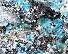 Fehrite is a hydroxyl-bearing, hydrated, copper-magnesium sulfate mineral approved by the International Mineralogical Association as a new species in 2019,[1] and formally described in 2021 from specimens obtained from the Casualidad mine, located near Baños de Sierra Alhamilla, in Pechina (Almería), Spain, which is consequently the type locality. The name is a tribute to Karl Thomas Fehr, Professor of Mineralogy at the Ludwig Maximilian University in Munich (Germany).[2]