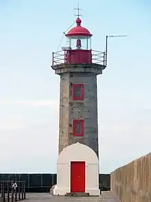 The Felgueiras Lighthouse (Portuguese: Farolim de Felgueiras), also known as the Farol de Felgueiras, Farolim do Molhe de Felgueiras, or Farolim Cabeça de Molhe, is a lighthouse on the Portuguese Atlantic coast, situated on a jetty or mole on the right bank of the Douro River, at the point where the river meets the ocean. It is situated in the parish of Foz do Douro, in the Porto municipality.[1]
