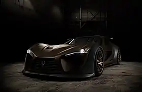 The exterior is a long nose kind of layout, with a design that slightly resembles that of lightweight track cars. The car has the inclusion of LED lighting. The car's carbon fiber diffuser gives the car more aggression. The interior design shows the lightweight track design much more boldly, with the inclusion of exposed carbon fiber and racing components. It still keeps a road car design with some leather installations.[5][6]
