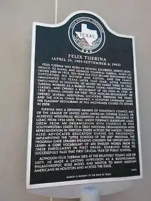 Felix Tijerina (1905–1965) was a Mexican-American restaurateur, activist, and philanthropist in Houston, Texas. He served as the 25th president of the League of United Latin American Citizens.