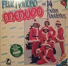 Feliz Navidad (1982) is Menudo's 12th album, and third Christmas album. The album was originally released in late 1982 with ten tracks and reissued in late 1983 with fourteen tracks. Both versions of this album have two different covers, with the second cover featuring Ricky Meléndez, Johnny Lozada, Xavier Serbiá, Miguel Cancel, and Charlie Massó. Both are compilations containing songs from their past Christmas albums Felicidades and Es Navidad.